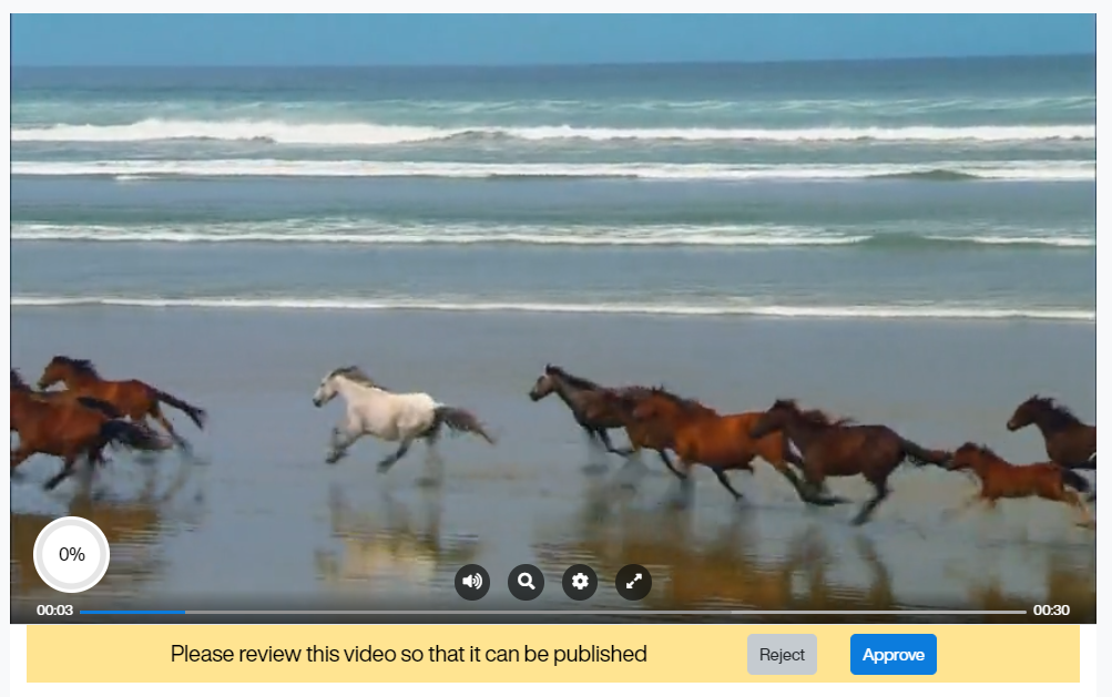 You will be directed to the video viewing page with the Reject button and Approve button below the video. Use these buttons to approve or reject the video.